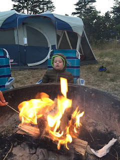One of the last trips of our summer was camping in Santa Cruz. Oh how I fought the idea of a camping trip, and I am so happy I lost. It was a two day trip. Yes, it was a ton of work, but so worth it once we got there. We brought two tents. One for us and the big kids, and a small one dedicated just to Charlie with high hopes that it would help him sleep better. That was definitely wishful thinking. The first night we tried to put him to sleep in his "own" tent with his pack and play inside, he instantly hoped out and started scratching and pushing on the door from inside. We all sighed, then laughed and tried to put him down again. And again. And again. Needless to say, he ended up sleeping with us that night, the little rascal.